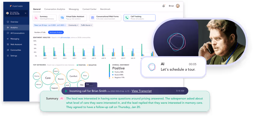 Sales teams aren't available 24/7, but Further's is! Further's Phone Assistant is trained for each community to answer prospect questions, book tours and schedule next steps any time—day or night.