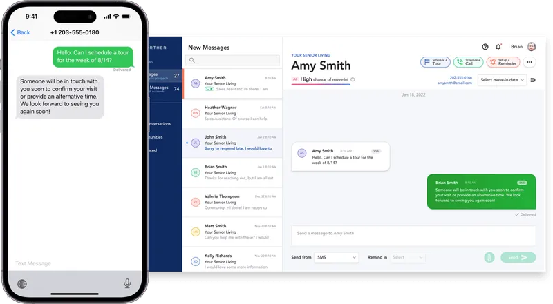 Further’s SalesAI platform — powered by our Phone, Messaging, and Training Agents — helps senior living operators stabilize their sales teams, protect pipeline performance, and get new hires producing faster than ever.
